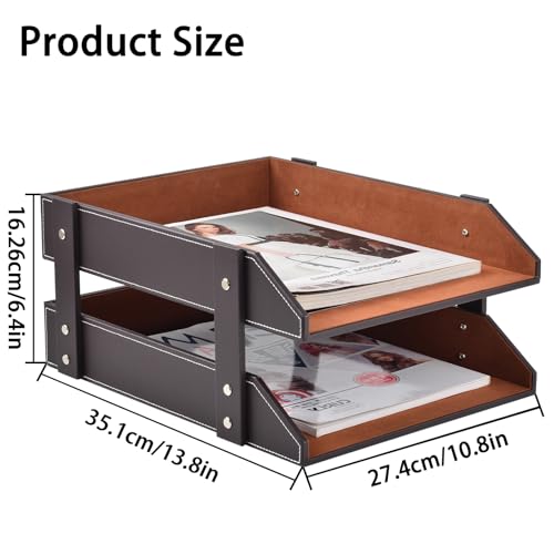 Leather Desk Organizer,2-Tier Stackable Letter Tray Holder,Office Supplies Desktop Storage Box for Document,Stationery,Magazines,Newspapers,Letters and Other Home Office Paper Sundries,Coffee