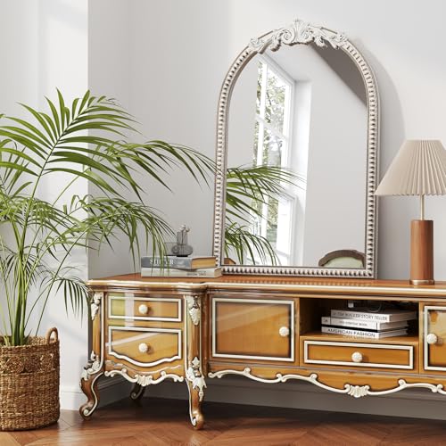Unique Design: The arch design of this wooden mirror makes it stand out, combining the charm of Baroque style with bead accents. It’s a perfect choice for those looking for a statement piece in their home, whether it’s in the entryway, living room, or bathroom